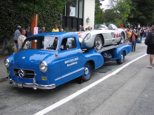aerodynamic 1950’s Mercedes Benz car hauler