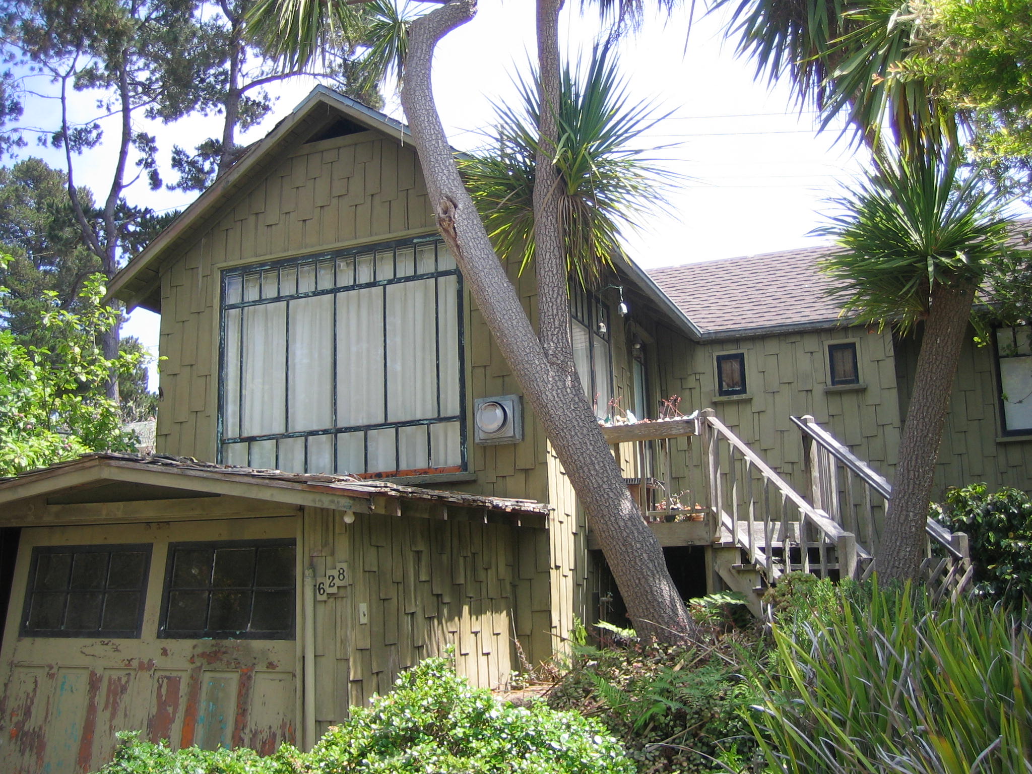 301 Main- this mid century house looks right out over the boat launch at the south end of the embarcadero. It’s better to view it from down there. One of the best front decks in town. To get down there walk north to Olive street…turn west.. walk down to the stairs on the bluff and walk south along the embarcadero towards the boat launch.