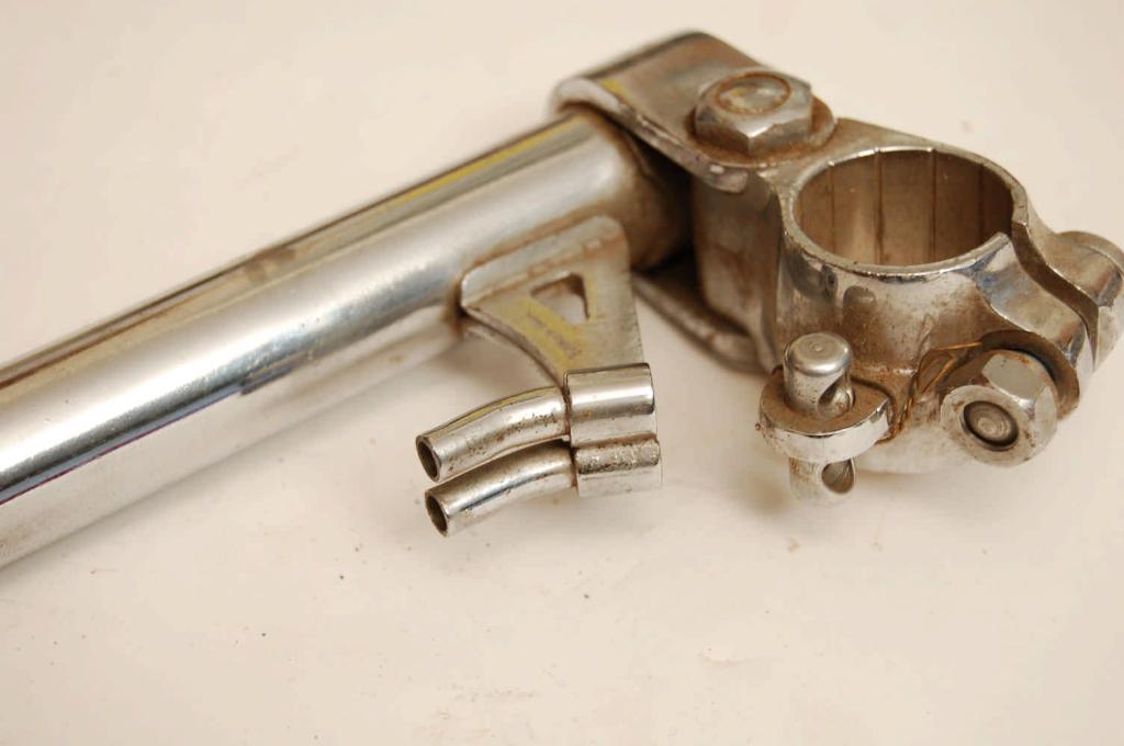 Look carefully at how this bike stem is made… basically you twist the handlebars downward in order to stop! No brake levers. Crazy scary… but interesting… perfect!