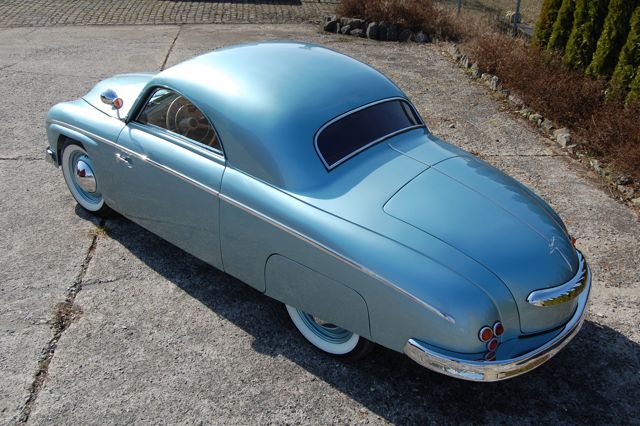 Here is the car a friend of mine Christian Grundmann recently restored.  It is a Rometsch Beeskow coupe… from 1951.  VW running gear, coachbuilt body designed by Johannes Beeskow in 1949, built by Rometsch Coachbuilders in Berlin.  One of about 175 Beeskows built by them.   Beautiful alloy body… nice lines!